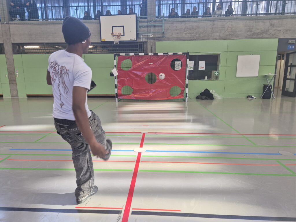 Kurz vor Weihnachten setzten Miriam Hepp, die Nachhaltigkeitsbeauftragte der Schule, und Philipp Schuler, SMV-Lehrer und Sportlehrer, die Idee, stattdessen einen Benefiz Sporttag durchzuführen, in die Tat um. Nach einem Basketballturnier zeigten die Schülerinnen und Schüler bei Liegestützen und Klimmzügen ihre Muskeln, beim Torwandschießen oder Slackline balancieren ihre Geschicklichkeit. Statt Runden drehen hieß es nun Punkte für den guten Zweck sammeln. Und so kamen schließlich mehr als € 3000 von Firmen und Privatsponsoren zusammen. Die SMV sorgte für das leibliche Wohl, für welches die Bäckerei Schöllkopf sämtliche Brezeln und Brötchen spendierte, sodass der Verkaufserlös komplett dem guten Zweck gespendet werden kann.